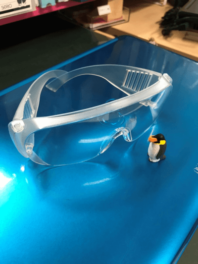 外来患者様とお会いしたり、入院の説明をする際や面談をする際に、当部署のスタッフは、写真のようなゴーグルを装着しております。