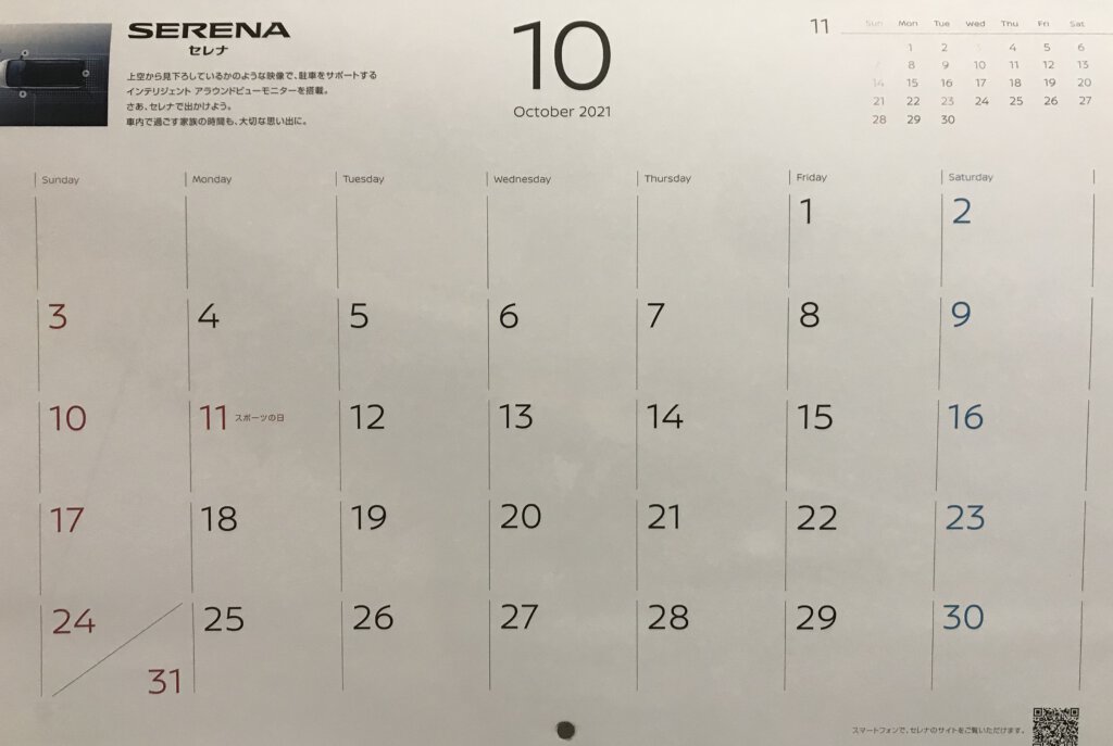 私の家で使っているカレンダーは、スポーツの日が祝日として書かれているものであったので祝日があると思っていました。本来であれば10月の第二月曜日が「スポーツの日」と祝日であったようですが東京オリンピックにより7月に祝日が移動したため10月に祝日がないみたいですね。皆さんの家にも祝日が変更される前のカレンダーがあるのではないでしょうか?